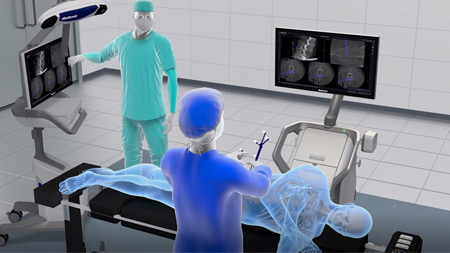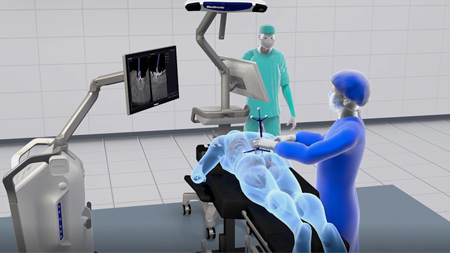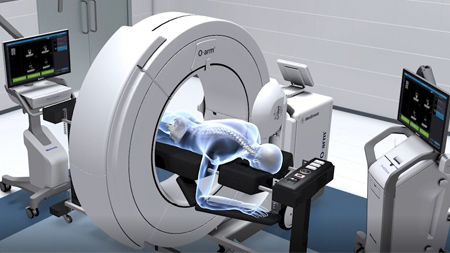 StealthStation S8 Spine Prone Lumbar frame Carts connected at foot O arm O2